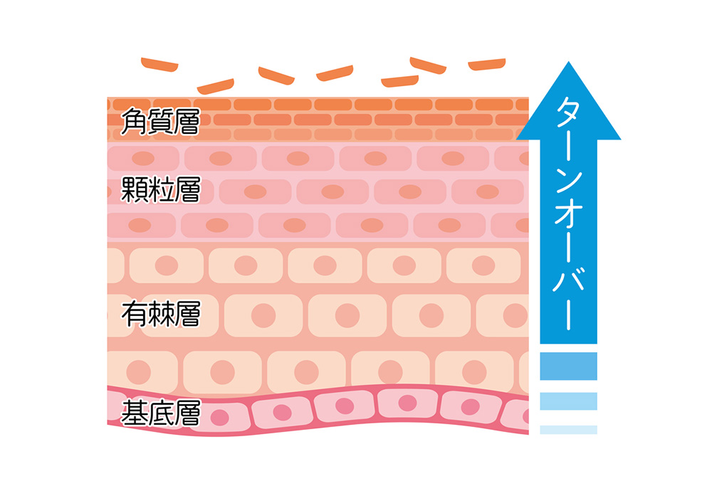 - ターンオーバーは20代前後で約4週間、加齢で延長